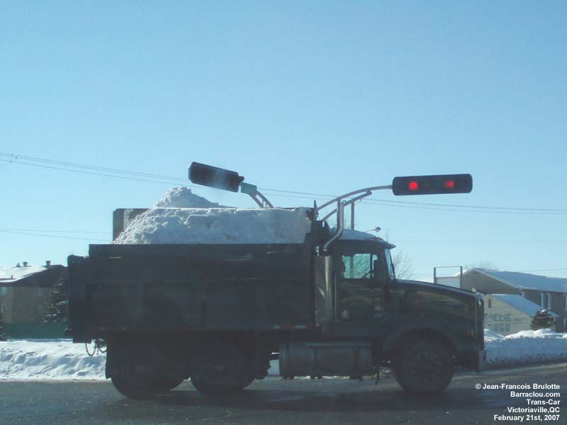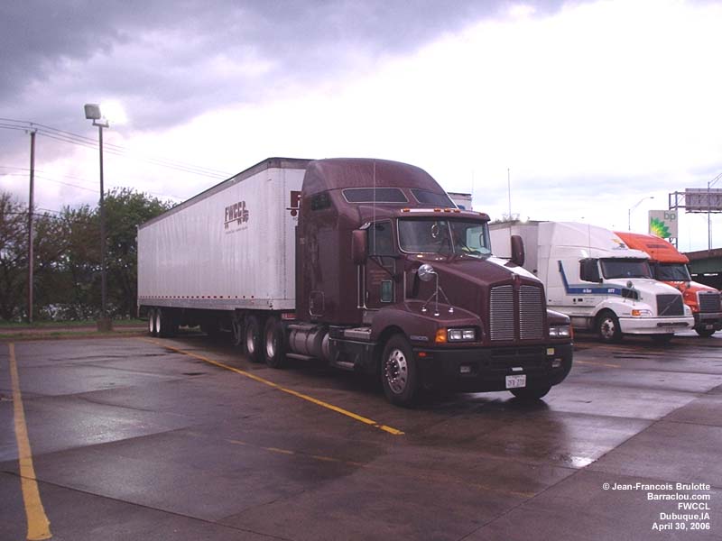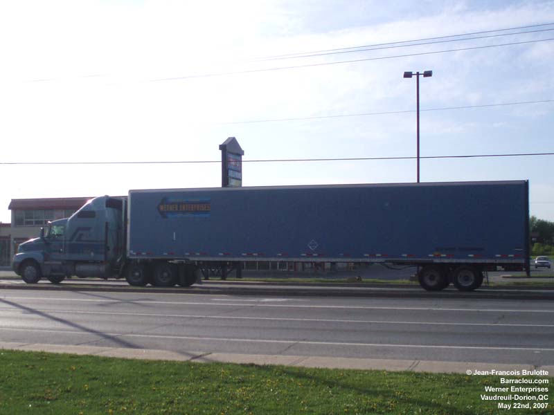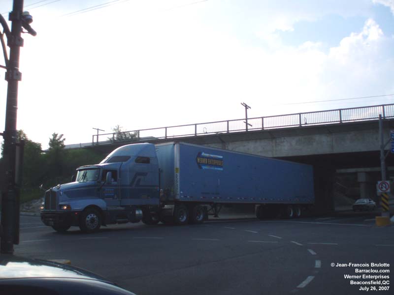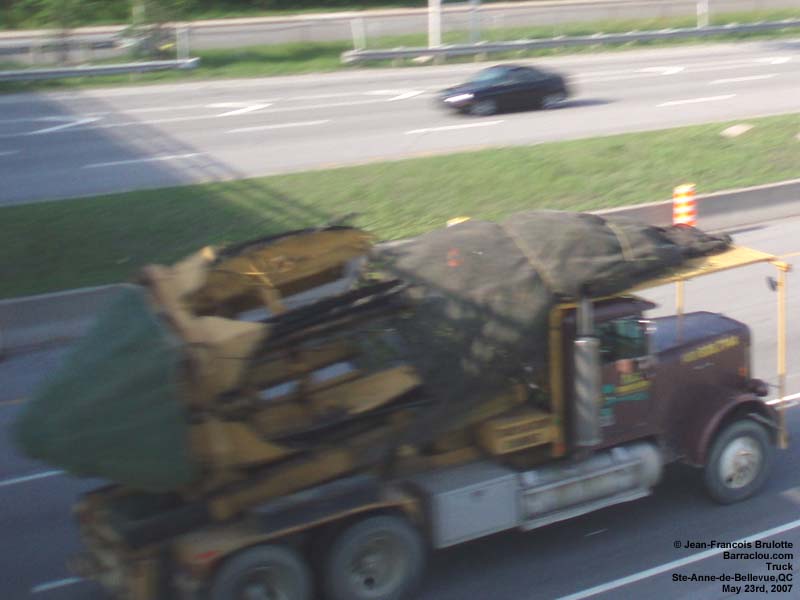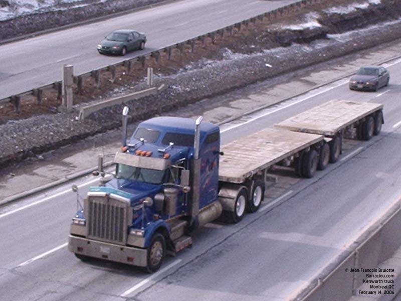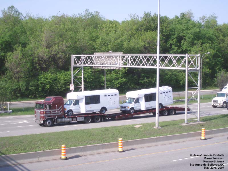 A Kenworth truck hauls a scrap metal load to the Contrecoeur founderies (on the Montreal southshore). A Kenworth truck tows a Greyhound bus. Werner Enterprises